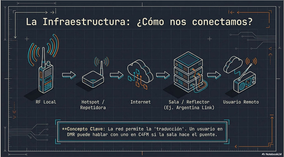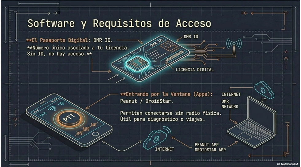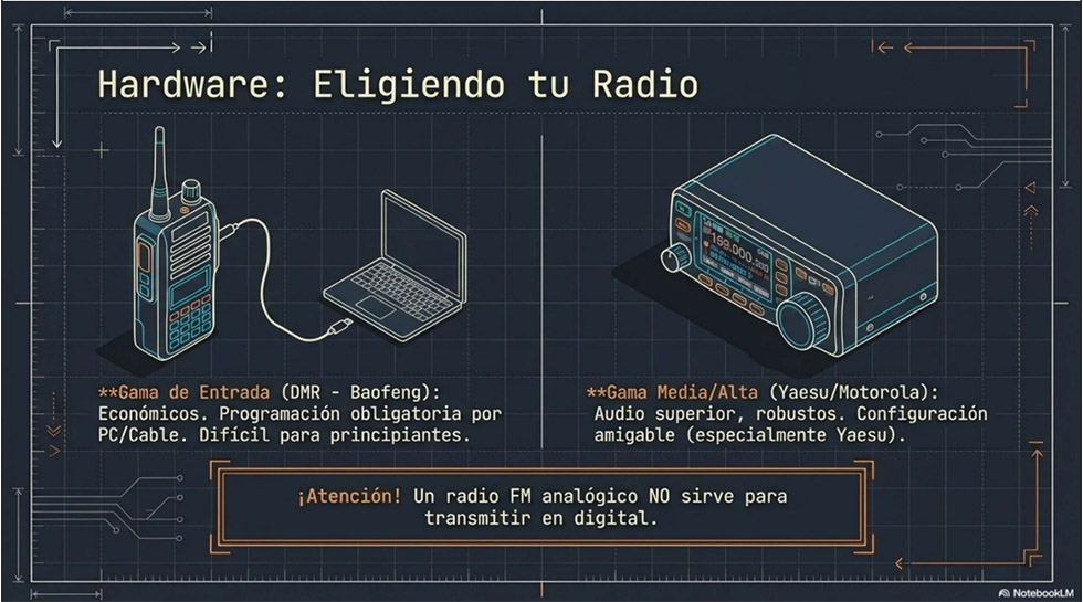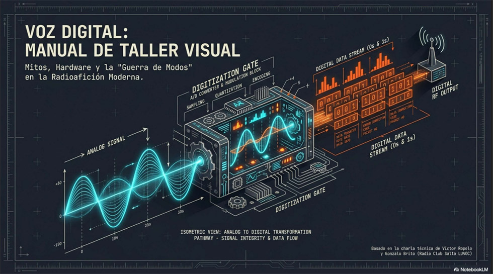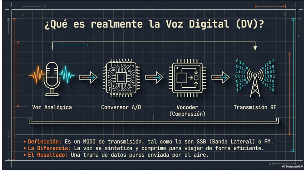 Ilustración breve y explicativa: "Voz Digital: Introducción a Modos, Dispositivos y Redes de Radioafición"